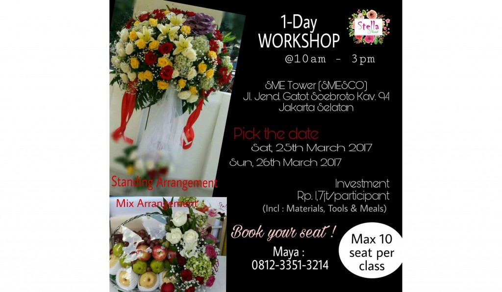 - jarang2 ada workshop bikin standing arrangement dan mix arrangenment (kususnya buah dan bunga)